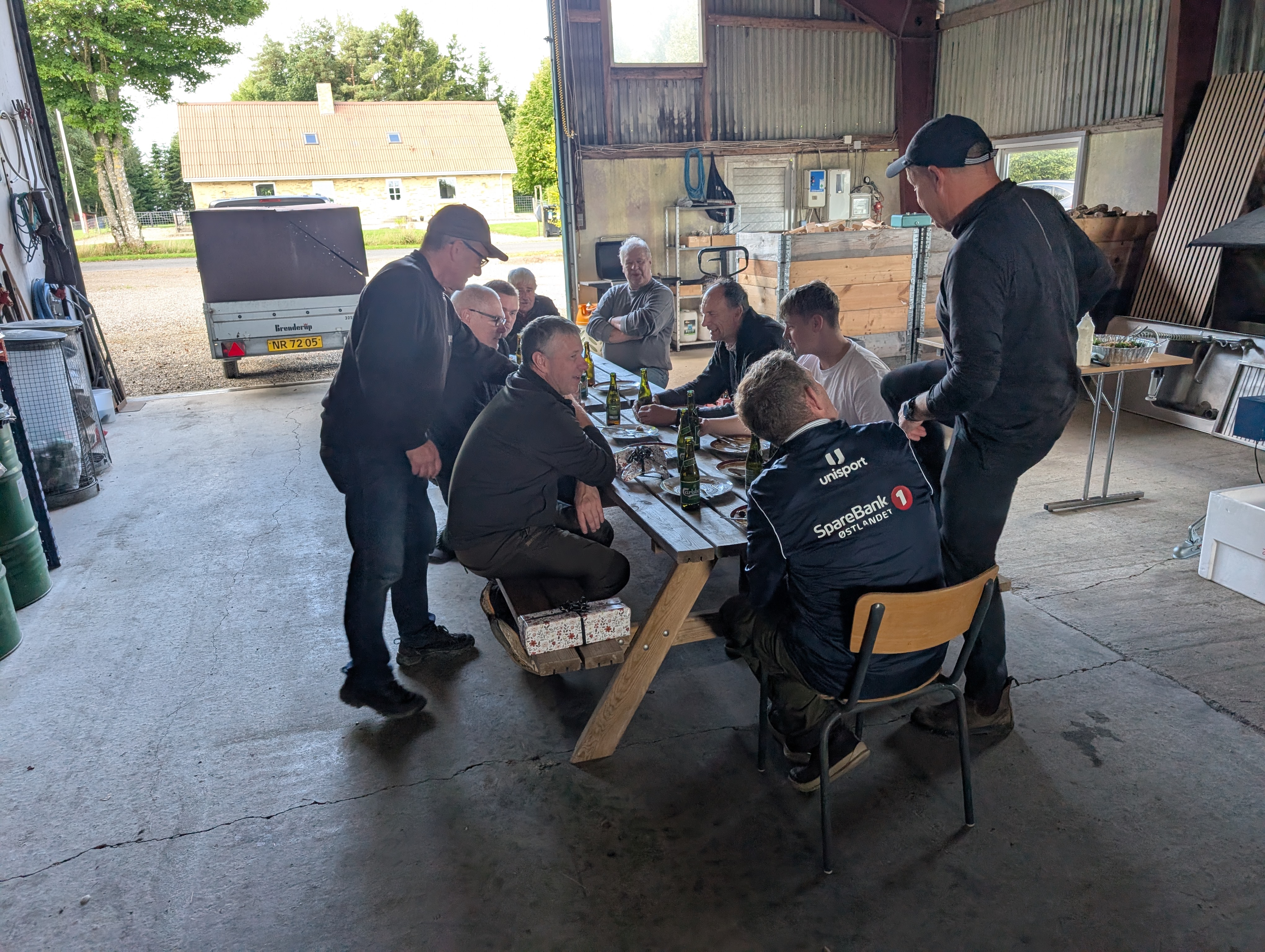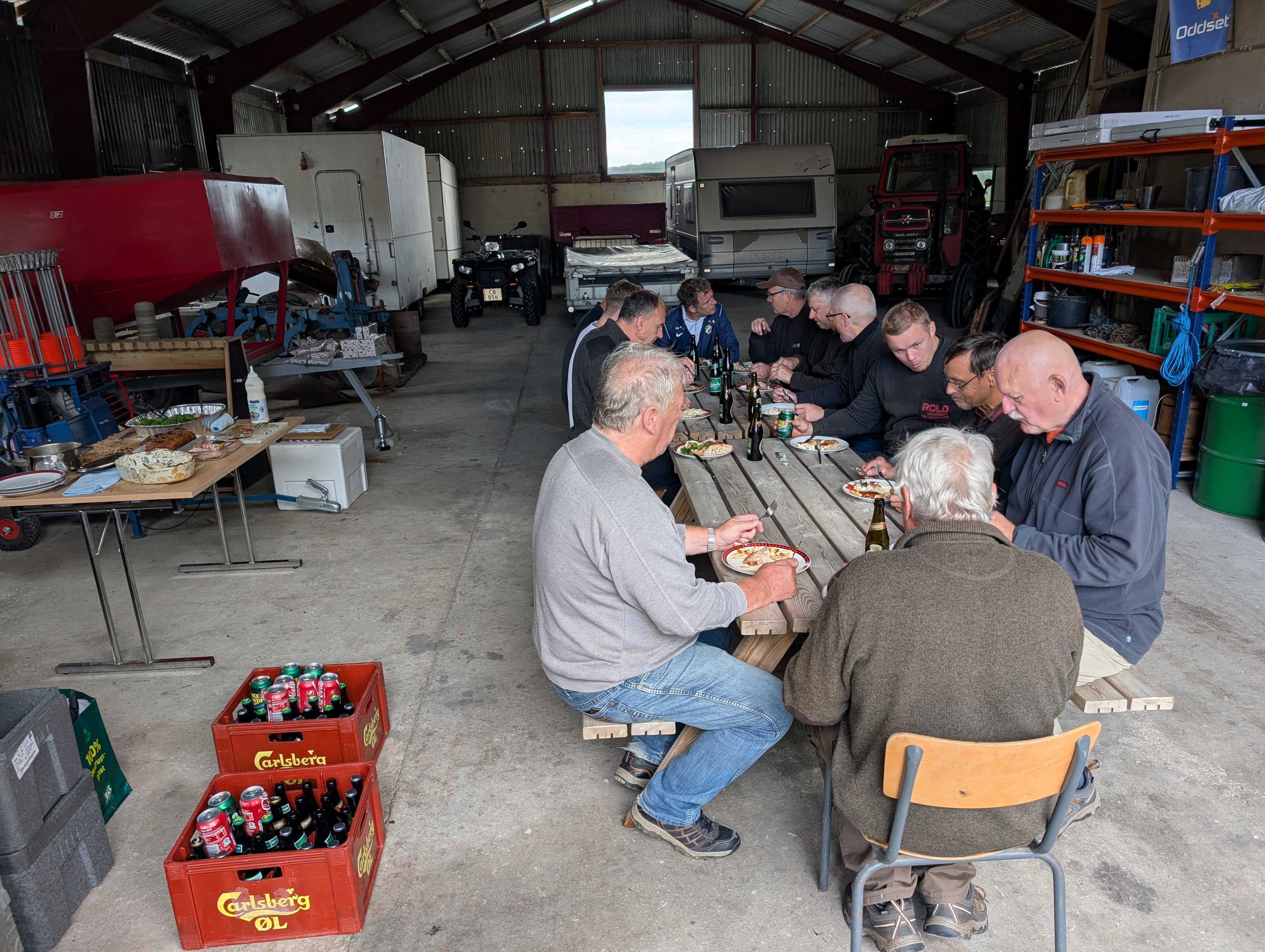 Efter skydningen samledes deltagerne til fællesspisning, hvor menuen stod på lækker grillet flæskesteg med flødekartofler, brun sovs, græsk salat, æble-/kålsalat og brød.